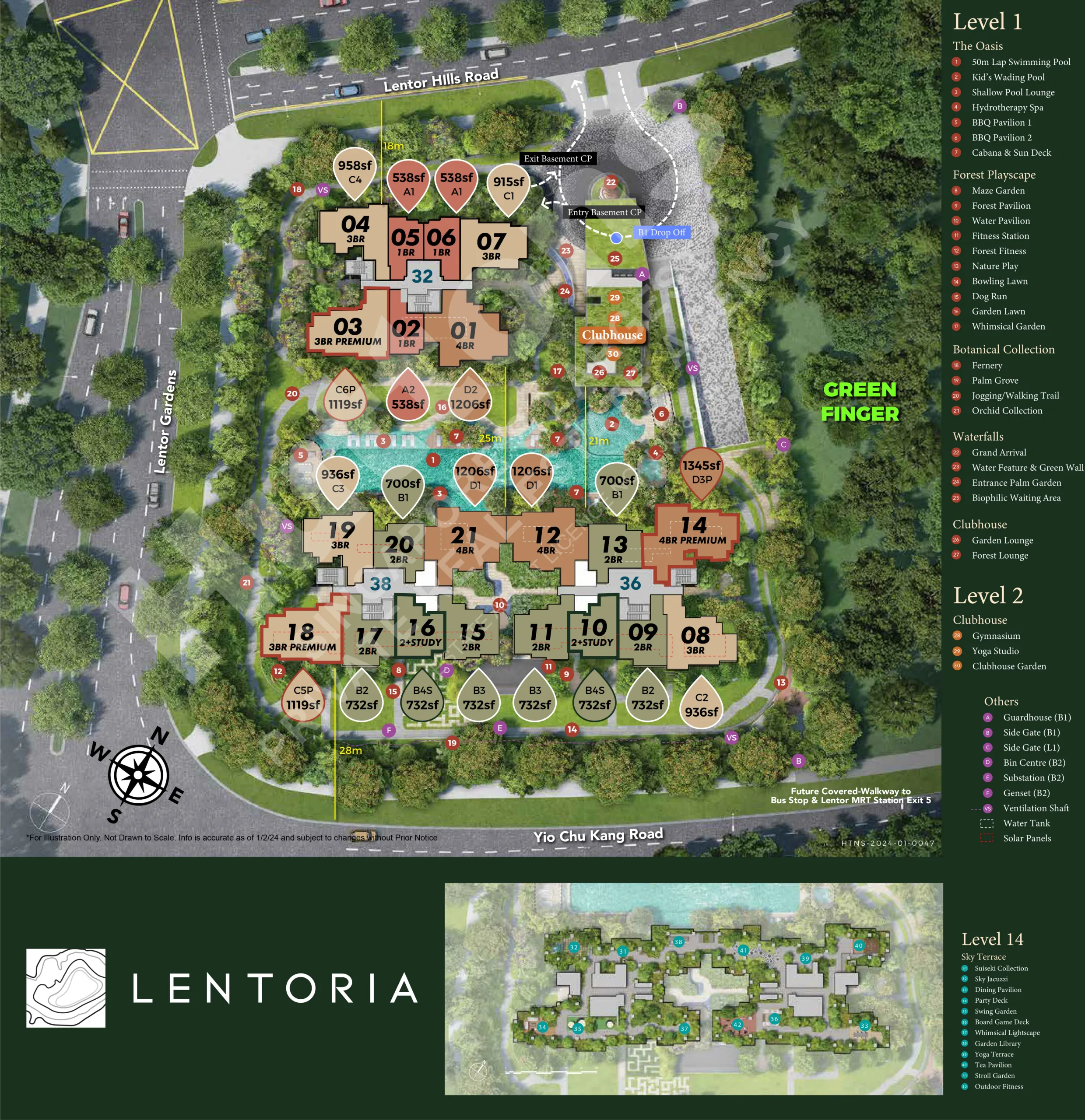 Indulge in the Luxurious Retreat at Lentoria, where you'll discover an oasis of tranquility amidst lush greenery. Immerse yourself in our stunning 50-meter lap pool, complete with poolside amenities and a rejuvenating hydrotherapy spa. For a refreshing dip, explore our artistically landscaped wading pool, designed to enhance your relaxation experience. Elevate your fitness routine at our state-of-the-art gym, offering panoramic views of the pool and garden, motivating you to reach your wellness goals while surrounded by natural beauty. Experience the Elevated Living at Lentoria's Sky Terrace, nestled on Level 14. This enchanting space is meticulously landscaped to create a vibrant community hub, where residents can connect, unwind, and enjoy breathtaking views in an exclusive setting.